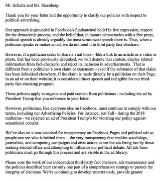 Here's the letter Facebook sent the @JoeBiden campaign explaining why it allowed Trump to run Facebook ads with false allegations about the VP and Ukraine -- @sarahmucha reports. http://www.cnn.com/2019/10/08/politics/facebook-biden-ad-request-trump-ukraine/index.html …